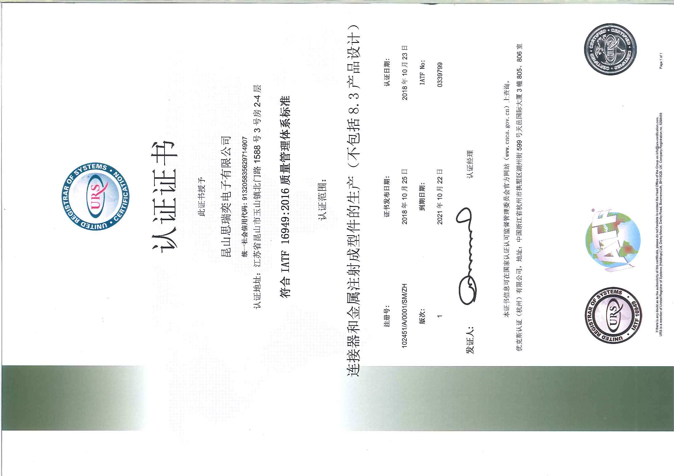 思瑞奕電子有限公司成立于2010年10月,注冊資金7500萬人民幣,總部位于江蘇省昆山市,在重慶、江蘇東臺、江蘇太倉設有分廠,公司于2011年通過ISO9001/ISO14001認證,2013年通過高新技術企業(yè)和TS16949(IATF)體系認定,2016年先后通過知識產權管理體系認證、安全生產標準化認證,2017年獲頒江蘇省民營科技企業(yè)、2018年先后獲得蘇州市人民政府認定企業(yè)技術中心、科技部認定中小型科技企業(yè)、江蘇省最具成長性高科技企業(yè)、2020年獲得江蘇省人民政府認定企業(yè)技術中心、2021年獲得蘇州市瞪羚計劃入庫企業(yè)、江蘇省省級工程技術研究中心、江蘇省專精特新中小企業(yè)等榮譽稱號......
